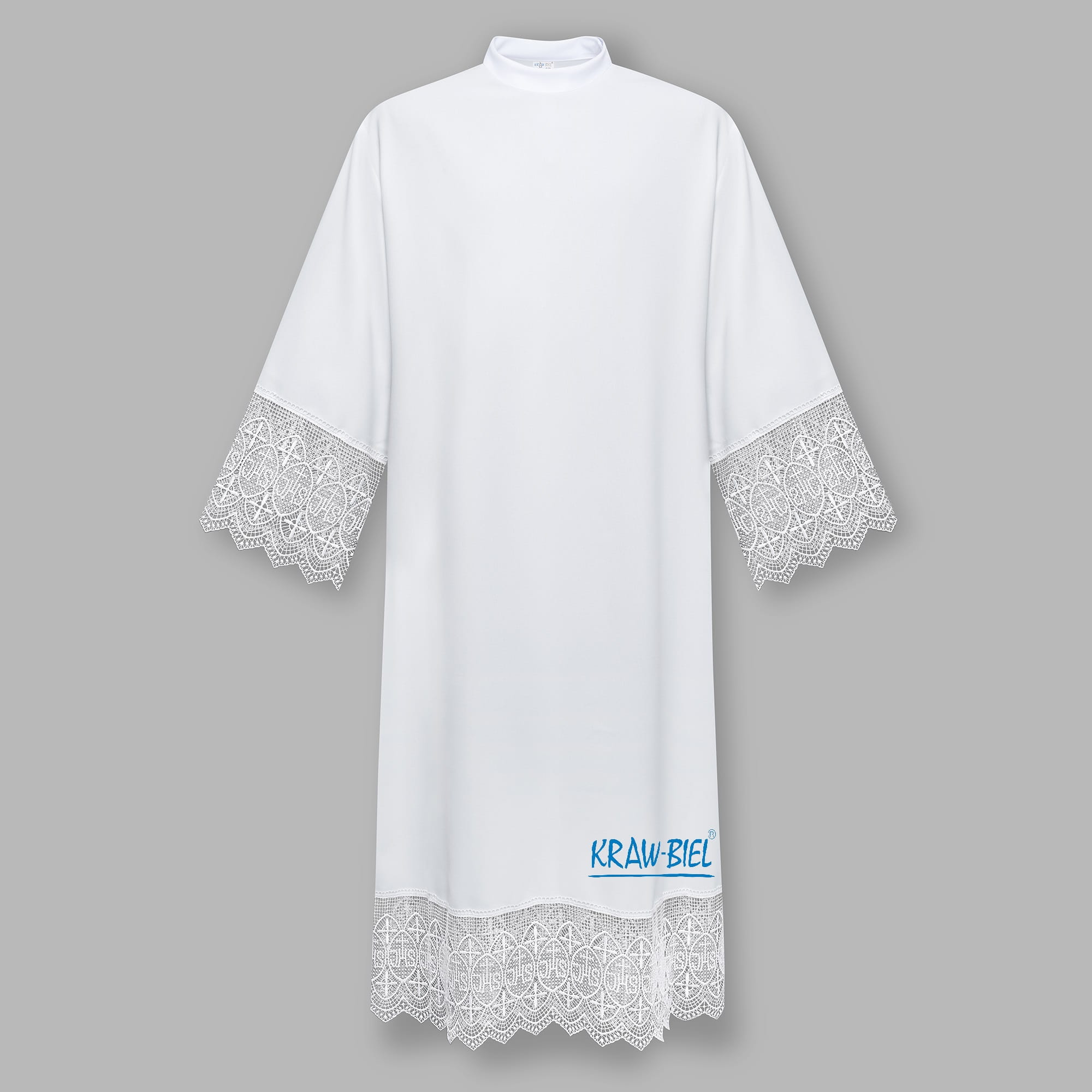 Alba wykonana z żorżety, gładka, bez zakładek , suwak na ramieniu. Posiada otwory na kieszenie.