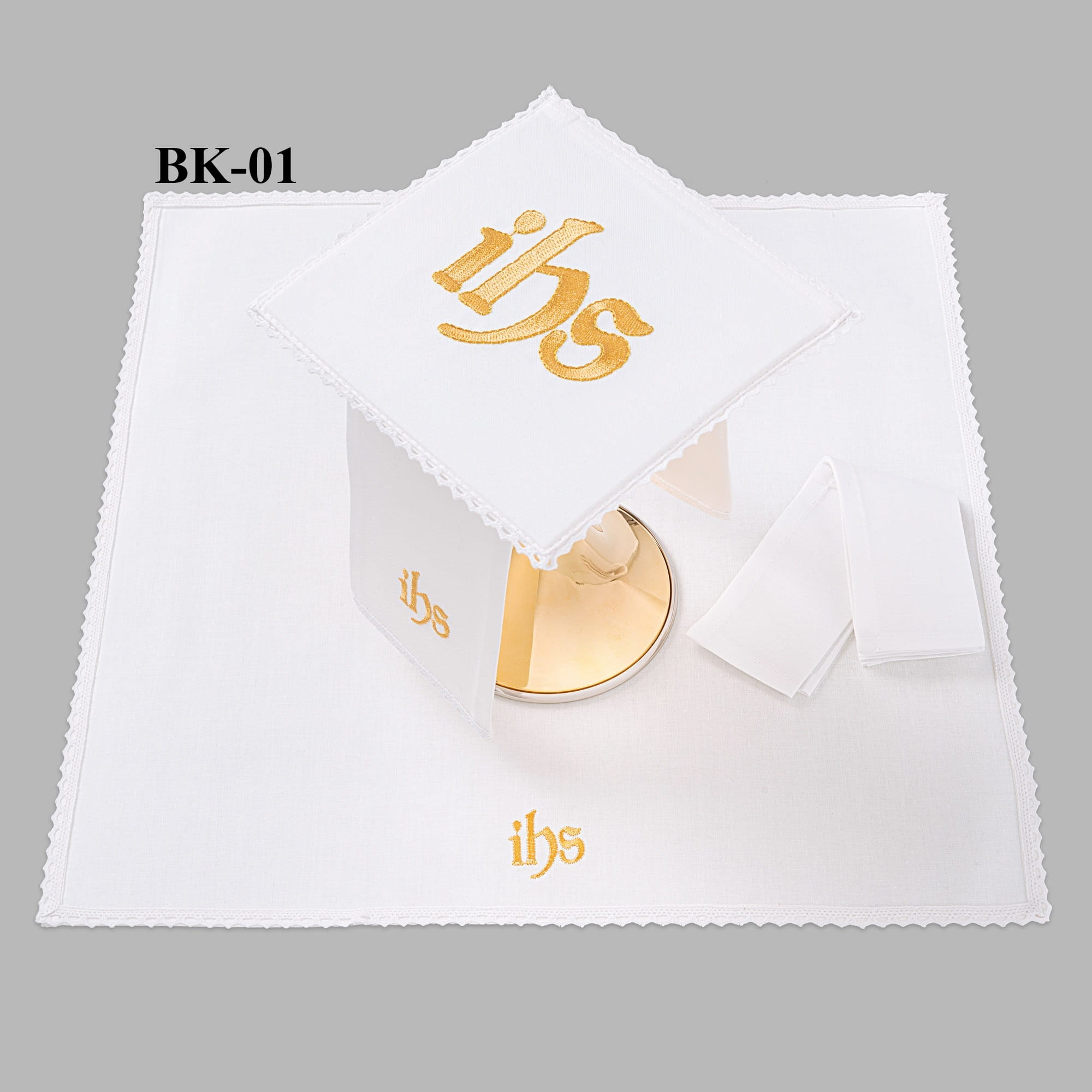 Bielizna kielichowa ołtarzowa wykończona koronką